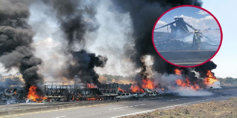 Calcinados 16 vehículos en carretera Lagos-San Juan