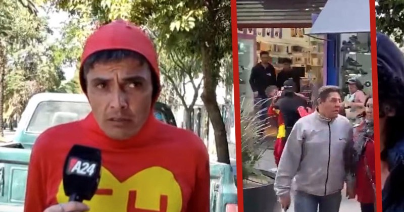 Hombre disfrazado del Chapulín Colorado impide robo en la calle