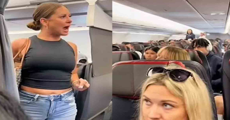 Una mujer a bordo de un vuelo de American Airlines provocó una escena cuando fue grabada en cámara enloqueciendo y dirigiéndose a la salida por un aparente pasajero que, según ella, «no era real»