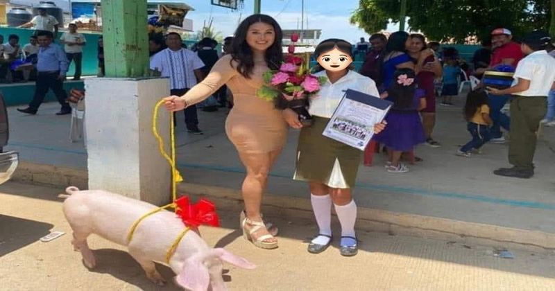 En la foto aparece la dama acompañada de una menor de quien fue madrina y que además porta un vestido corto entallado color carne por lo cual también fue criticada