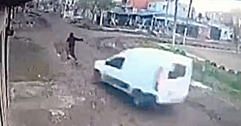 Repartidor corretea a ladrón que lo asaltó y lo atropella