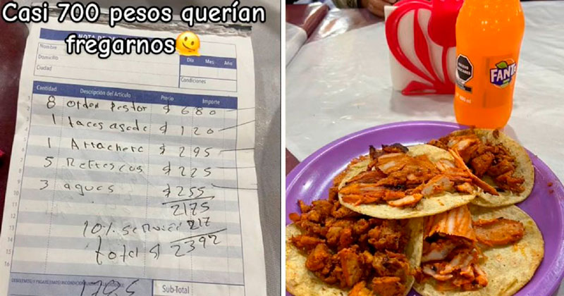 Denuncia que le intentaron vender una orden de tacos por más de 2 mil pesos