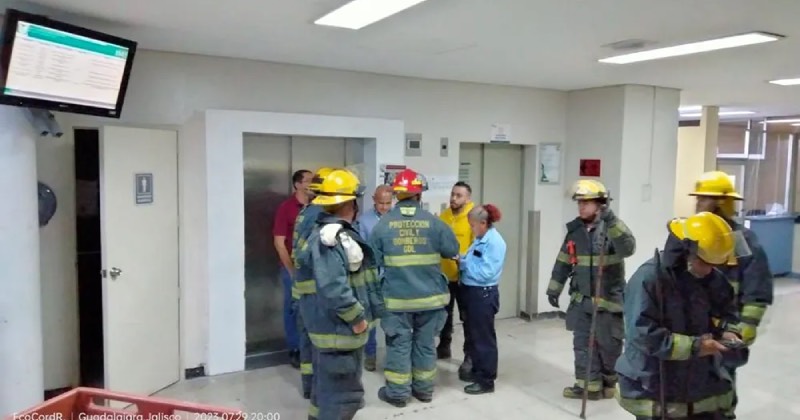 Un cubo de elevador en el HGZ 89 de Guadalajara, Jalisco, se desplomó e incendió con tres personas dentro