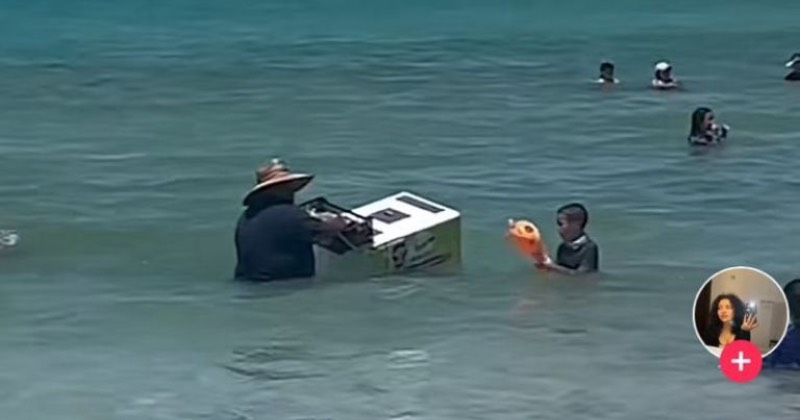 Hombre se mete al mar a vender sus helados y se vuelve viral