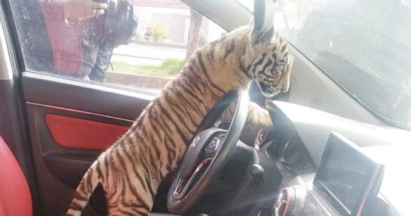 Detienen a hombre que paseaba… ¡con un tigre!