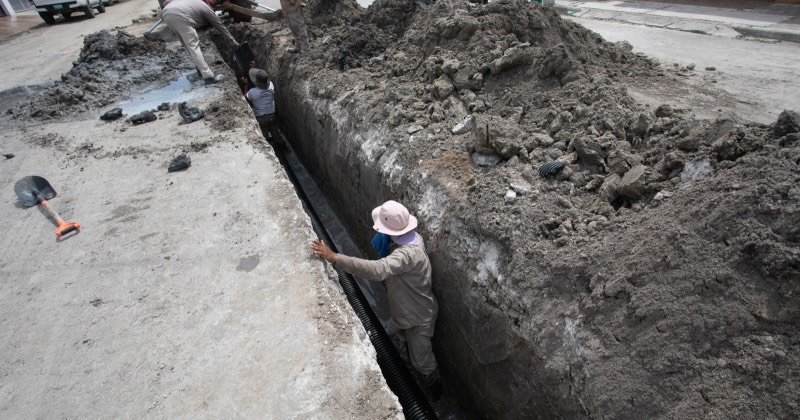 Estas acciones se están efectuando en la calle Bustamante, entre 5 de Mayo y 13 de septiembre de la referida colonia, en donde se introducen 75 metros lineales de tubería corrugada ADS
