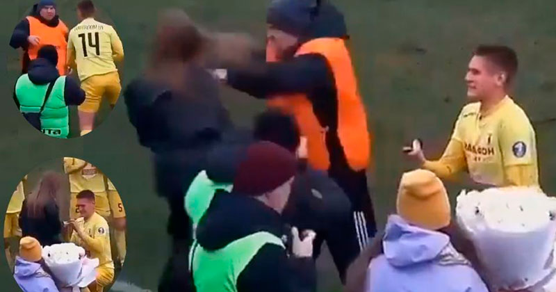 Futbolista pide matrimonio en pleno partido y guardia empuja violentamente a la novia