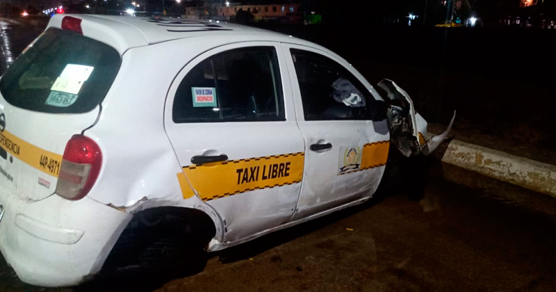 Taxista derrapó sobre pavimento mojado y tumbó un poste de alumbrado público