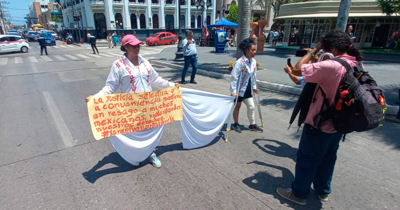 En la breve marcha, estuvo acompañada de otra mujer que portaba una pancarta en la que se detallaba que la justicia selectiva mantenía en rezago a muchos mexicanos.