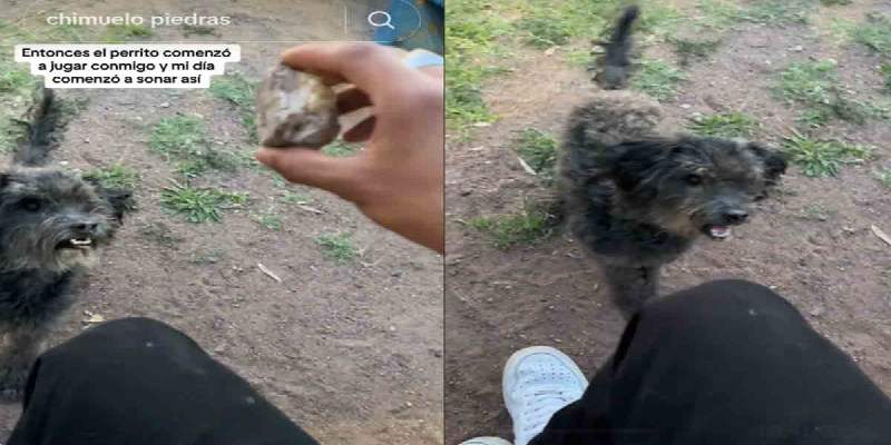 El video del peludito jugando fue compartido en Tiktok, en donde un joven, quien se encuentra en un parque, aparece mostrando la piedra, que después lanza a un perrito callejero muy mechudo