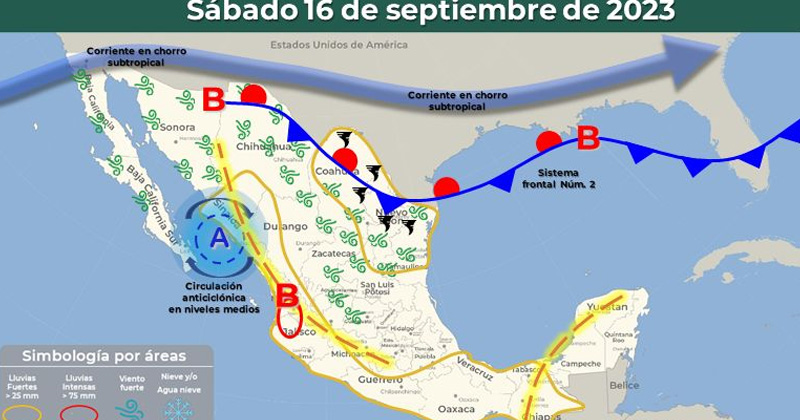 Entre sábado y domingo el sistema frontal número 2 causará precipitaciones, sin embargo las altas temperaturas continuarán