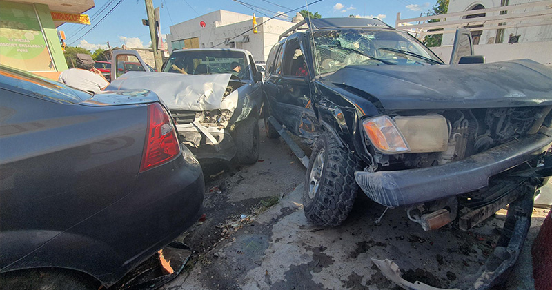 Una simple omisión de alto provocó este choque múltiple que dejó saldo de dos personas lesionadas y costosos daños materiales