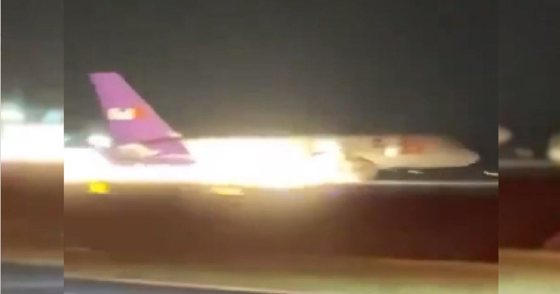 Avión de FedEx aterriza de emergencia, saca chispas y sale de la pista