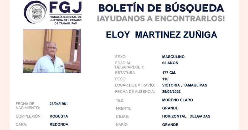 Reportan como desaparecido a Don Eloy; fue visto por última vez en Victoria