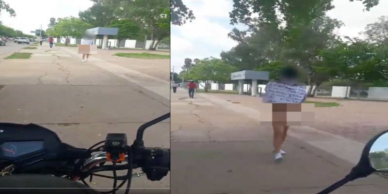 Un joven apareció desnudo, con cartulinas sujetas a su pecho y espalda, en ellas una advertencia dirigida a los vendedores de vapeadores en Sinaloa