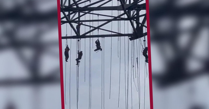 Trabajadores quedan colgados en lo alto de una construcción; uno murió