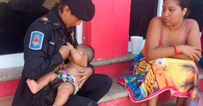 Mujer policía amamanta a bebé que no había comido en Acapulco