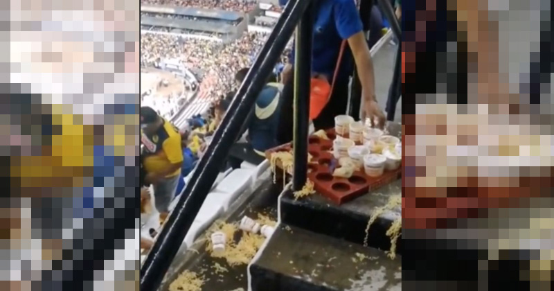 «Mi Primera Chamba»: vendedor del Estadio Azteca tira todas las sopas Maruchan