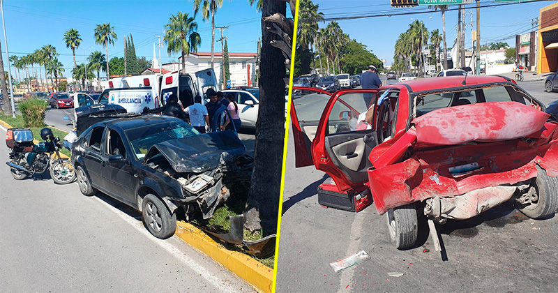 Una enorme estela de daños materiales generó este percance múltiple, ocurrido en el cruce del 8 Olivia Ramírez