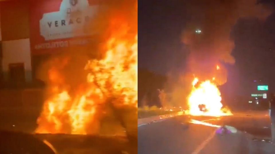En los videos que ya circulan por las redes sociales, puede verse que el fuego alcanza varios metros y arroja humo blanco, mientras que en el pavimento quedó una persona herida, supuestamente involucrada también en el choque; hasta el momento tampoco han revelado su identidad o cómo se conecta con el incidente.