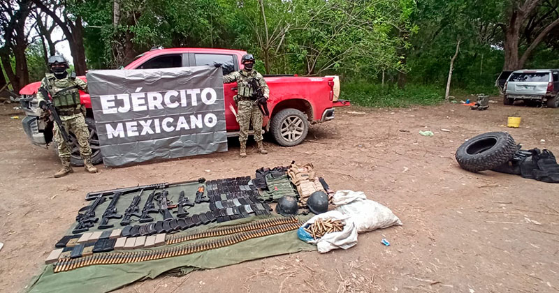 En tres diferentes acciones, personal Militar localizó armamento de grueso calibre, así como vehículos blindados, unos en un campamento de Abasolo