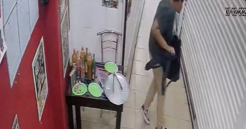 Cámara de seguridad captó el momento en que una persona huye del sismo con todas las pizzas en la mochila