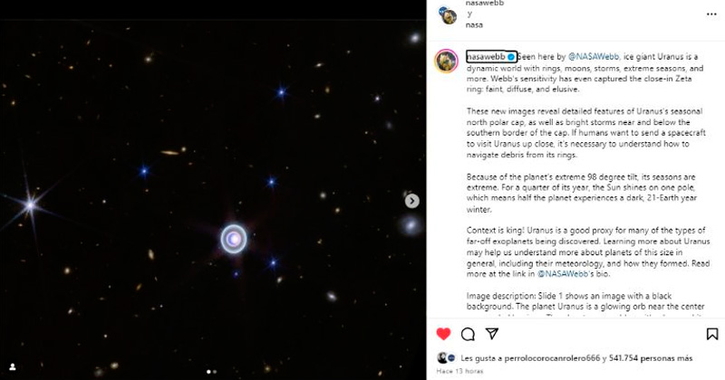 El Telescopio Espacial James Webb reveló impresionantes imágenes de Urano