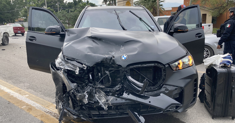Atraviesa su vieja camioneta al paso de otra de reciente modelo, sobre la carretera a Monterrey y resulta con fracturas