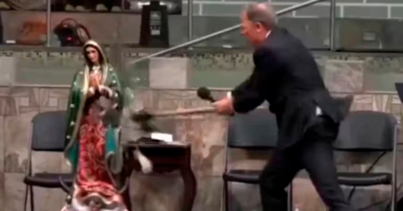 VIDEO: Pastor destruye imagen de la Virgen de Guadalupe