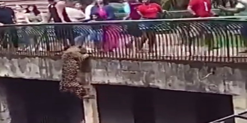 Jaguar escala jaula de zoológico y por poco alcanza a los visitantes
