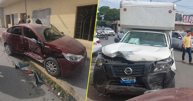 Automóvil omite el alto del 22 Matamoros y es impactado por una camioneta repartidora, dos personas resultaron lesionadas.