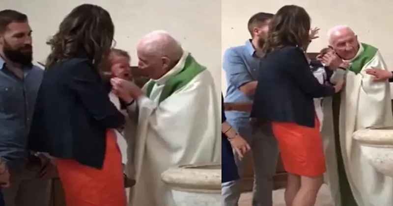 Sacerdote enfurece y da tremenda cachetada a bebé