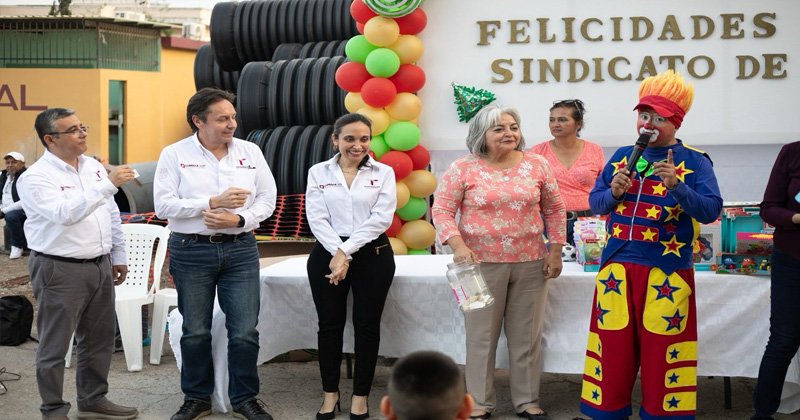 La dirigente del sindicato, Cristina Esqueda Sánchez, agradeció al gerente general su apoyo para realizar este evento y deseó un próspero 2024 a los trabajadores del organismo operador del agua.