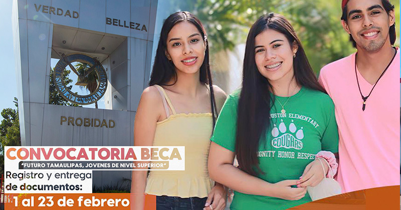 CIUDAD VICTORIA, TAMAULIPAS.- La Universidad Autónoma de Tamaulipas (UAT), de manera coordinada con el Gobierno del Estado a través del Instituto Tamaulipeco de la Juventud (ITJUVE) y el Instituto Tamaulipeco de Becas, Estímulos y Créditos Educativos (ITABEC), promueve entre su comunidad estudiantil la convocatoria de la beca Futuro Tamaulipas, Jóvenes de Nivel Superior.