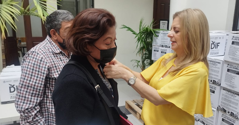 Féres de Nader, colocó de manera simbólica un listón amarillo a cada una de las personas que visitaron las instalaciones del Sistema DIF, explicando la importancia de que, como sociedad, adoptemos una cultura de mayor empatía con los menores y familias afectadas por este mal