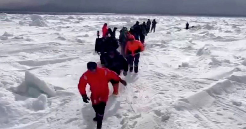Rusia salvó a los trabajadores que quedaron sobre el enorme pedazo de hielo que se desprendió de un pueblo