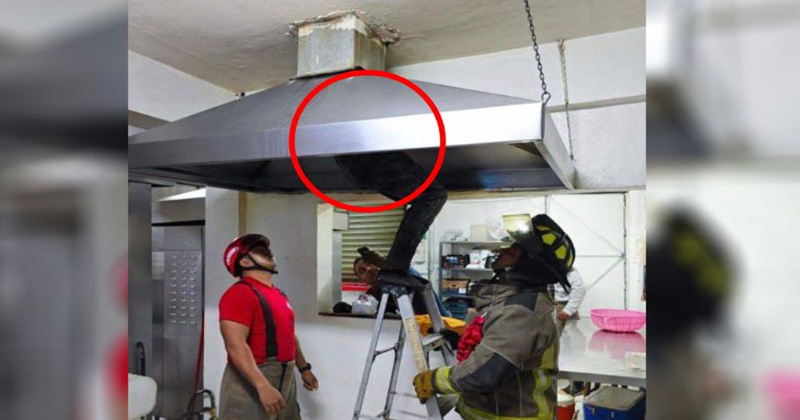 Sujeto entra a robar a una pollería y queda atrapado en la chimenea