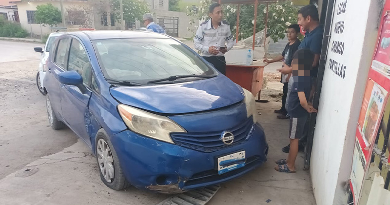Mujer se queda dormida al volante e impacta a un coche estacionado, trepa a la acera y por poco choca la pared de una tienda.
