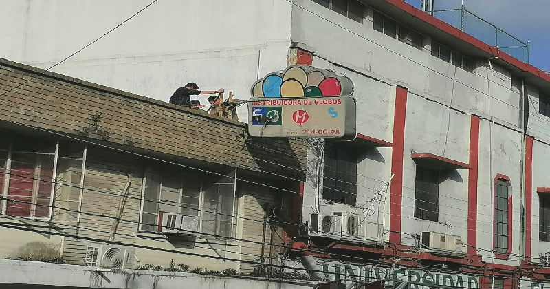 Vientos casi tumban anuncio; Bomberos lo retiran