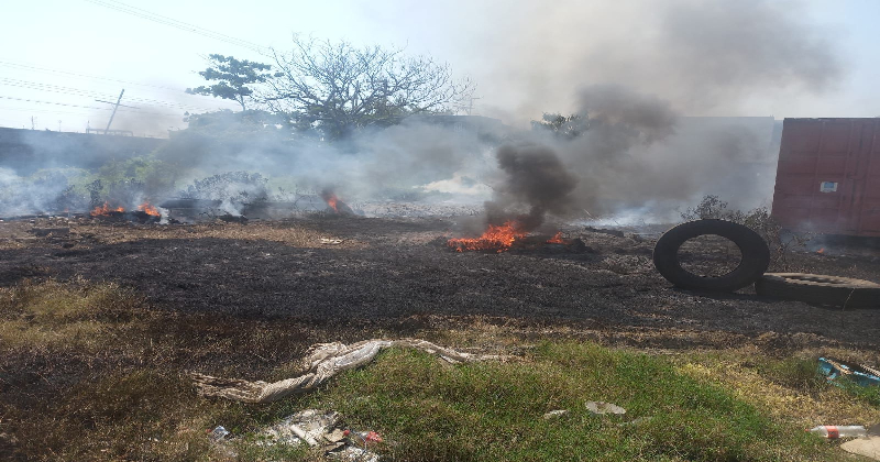 Arde pastizal en donde resguardan contenedores