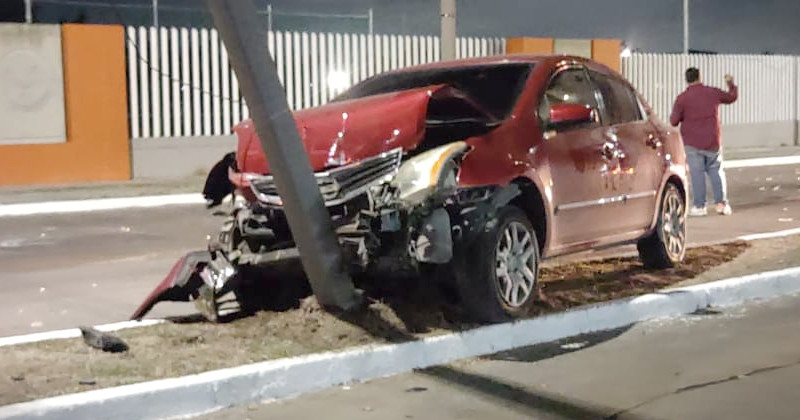 Destrozó su automóvil al impactar a una camioneta y un poste de alumbrado público