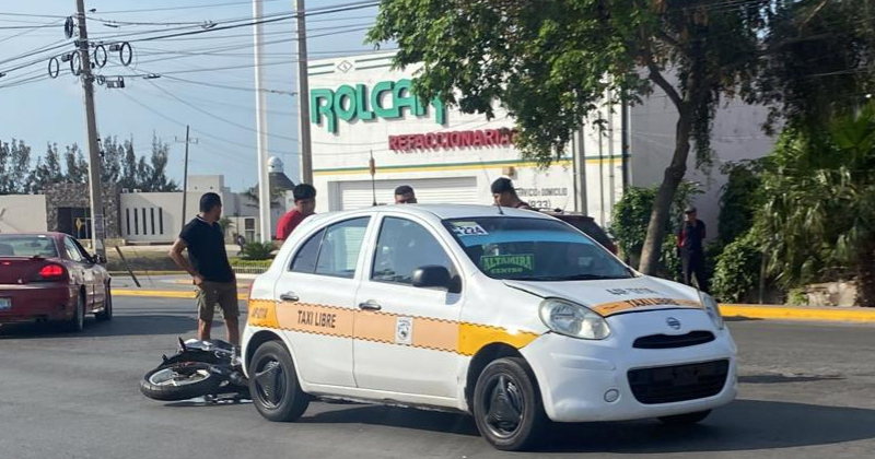 Motociclista choca con taxi y sale lesionado