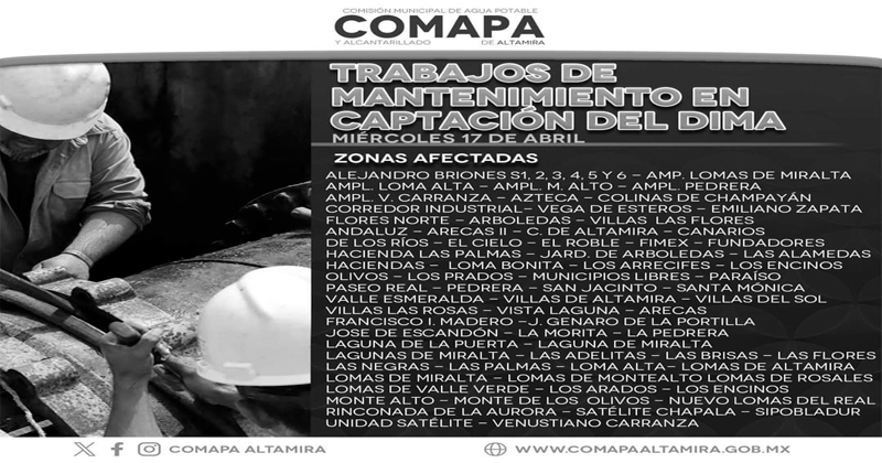 La Comapa informó que los trabajos se realizan en las instalaciones de la captación del DIMA