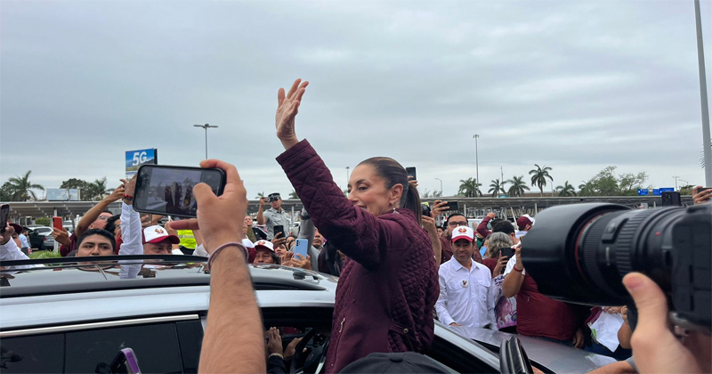 «Presidenta», «presidenta», «presidenta»; «es un honor esta con Claudia hoy», «es un honor esta con Claudia hoy»; era las porras que hacían retumbar el aeropuerto.
