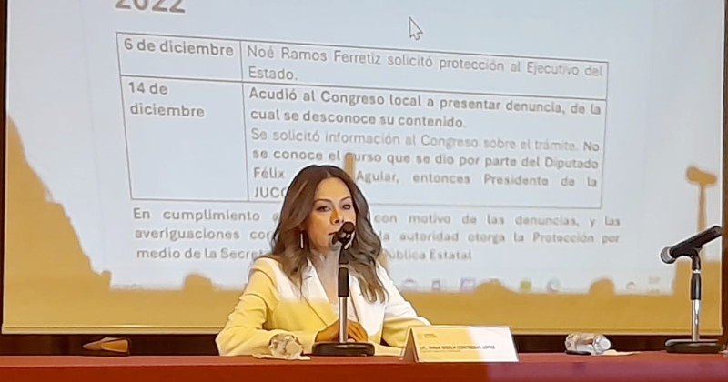 El 14 de diciembre de ese año, el alcalde se presentó al Congreso del Estado para informar sobre presuntas amenazas recibidas, sin embargo, por parte del Poder Legislativo, no se entregó comunicación al Gobierno del Estado, aclaró la Consejera.