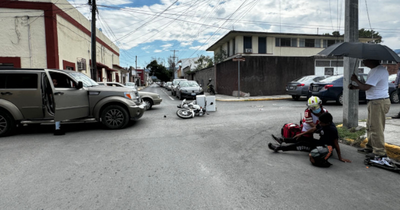 Conductora de una Dodge Nitro no se detuvo en el reductor de velocidad ni frente a la señal de alto y derribo a un repartidor.