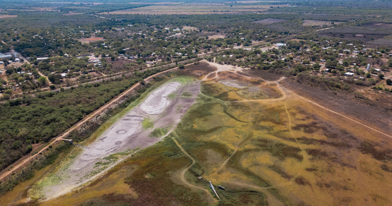 Hasta el mes pasado este embalse suministraba agua para riego; actualmente luce totalmente seco, con una costra de tierra resca como vestigios del agua que tuvo.