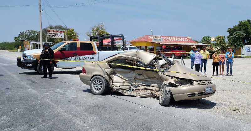 Automovilista es impactado duramente por una camioneta en el kilómetro 97 de la carretera Victoria – Matamoros.
