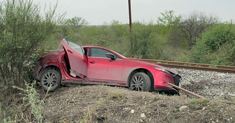 Integrantes de una familia regia resultan lesionados luego que el conductor de un Mazda, quiso ganarle el paso al tren; fue arrastrado hasta destrozar el vehículo.