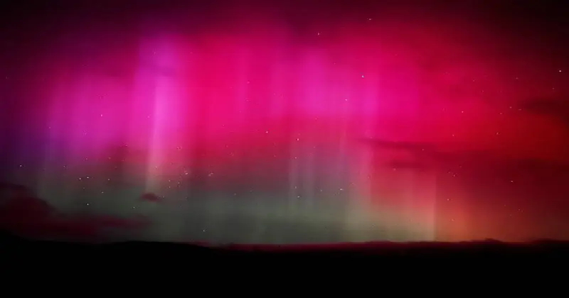 Aurora rosa y violeta ilumina cielo de Nueva Zelanda por tormenta solar